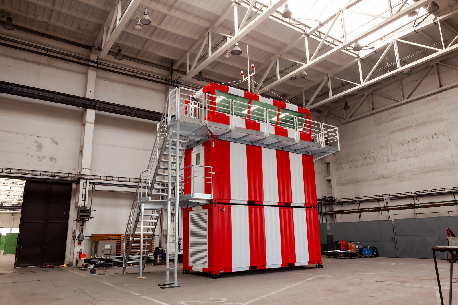 Prízemie veže tvorí kontajner s dieselovým generátorom, ktorý slúži ako náhradný zdroj elektrickej energie. Počet poschodí veže a tým aj jej výška je prispôsobená požiadavkám zákazníka. Ostatné podlažia môžu obsahovať miestnosti na odpočinok, skladové priestory, kuchynský kút, konferenčnú miestnosť, sociálne zariadenia a iné. Kabína na vrchnom podlaží má 360° panoramatické okná a kompletné vybavenie pre zabezpečenie riadenia a navigácie letovej prevádzky.